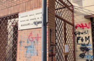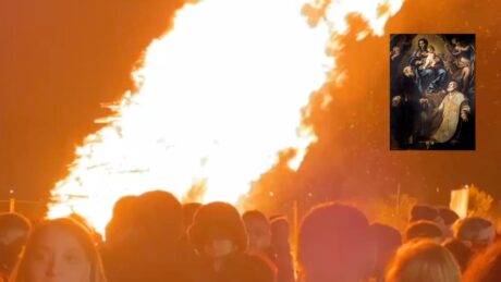 Un falò improvvisato nel cuore della notte, le fiamme che si alzano in strada.