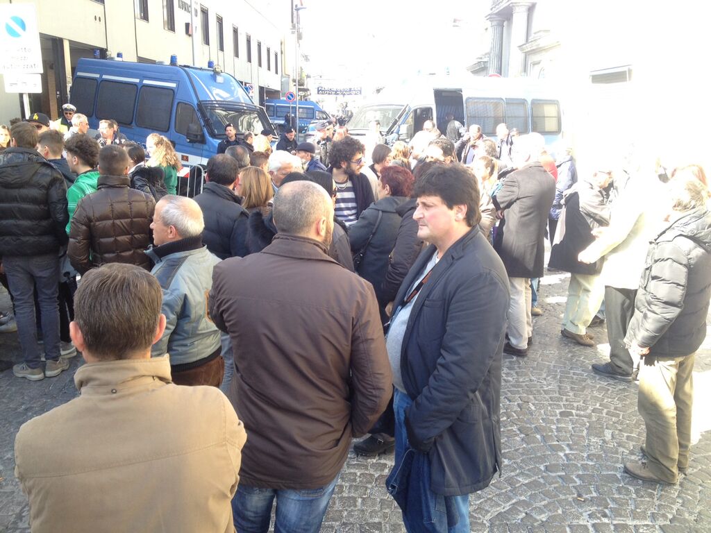 13.20- I manifestanti hanno dichiarato che non si sarebbero mossi fino a quando almeno uno dei commissari non avessero accettato di incontrarli. Il commissario Colucci che si stava recando alla casa comunale ha incontrato i cittadini che gli hanno esposto tutte le problematiche inerenti Tares e discarica in Masseria Monticelli. Il commissario non ha dato rispostema ha semplicemente dichiarato di raccogliere le loro istanze.