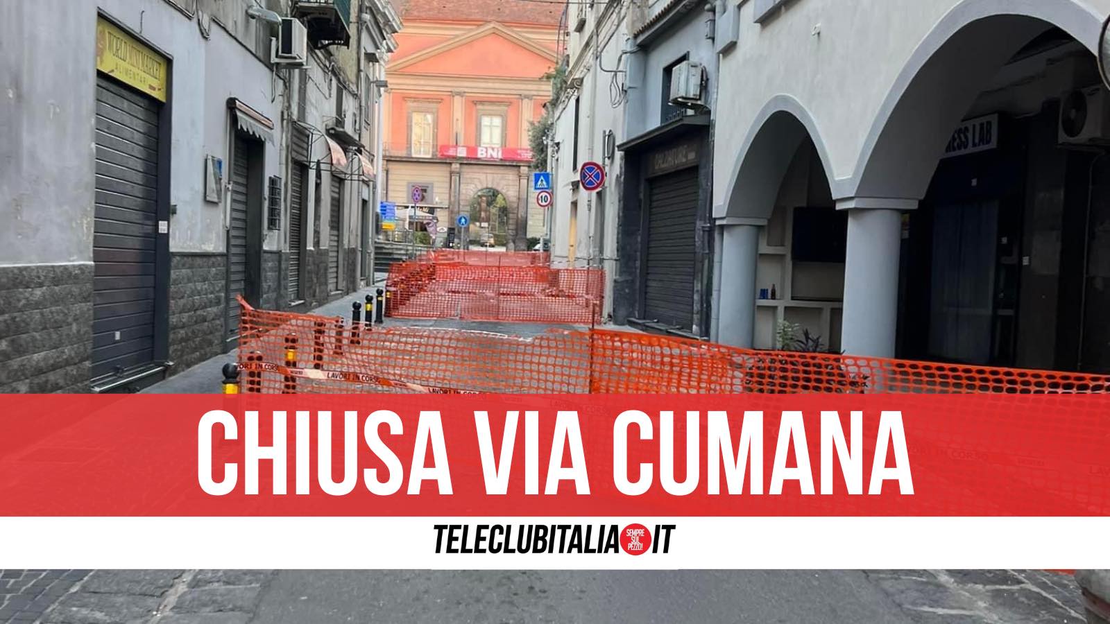 Cadono calcinacci in via Cumana, a Giugliano. L’arteria stradale che costeggia il sagrato della Chiesa Santa Sofia e porta nella centralissima piazza Matteotti è stata messa in sicurezza e interdetta al passaggio dei veicoli con alcuni nastri segnaletici e reti di cantiere.