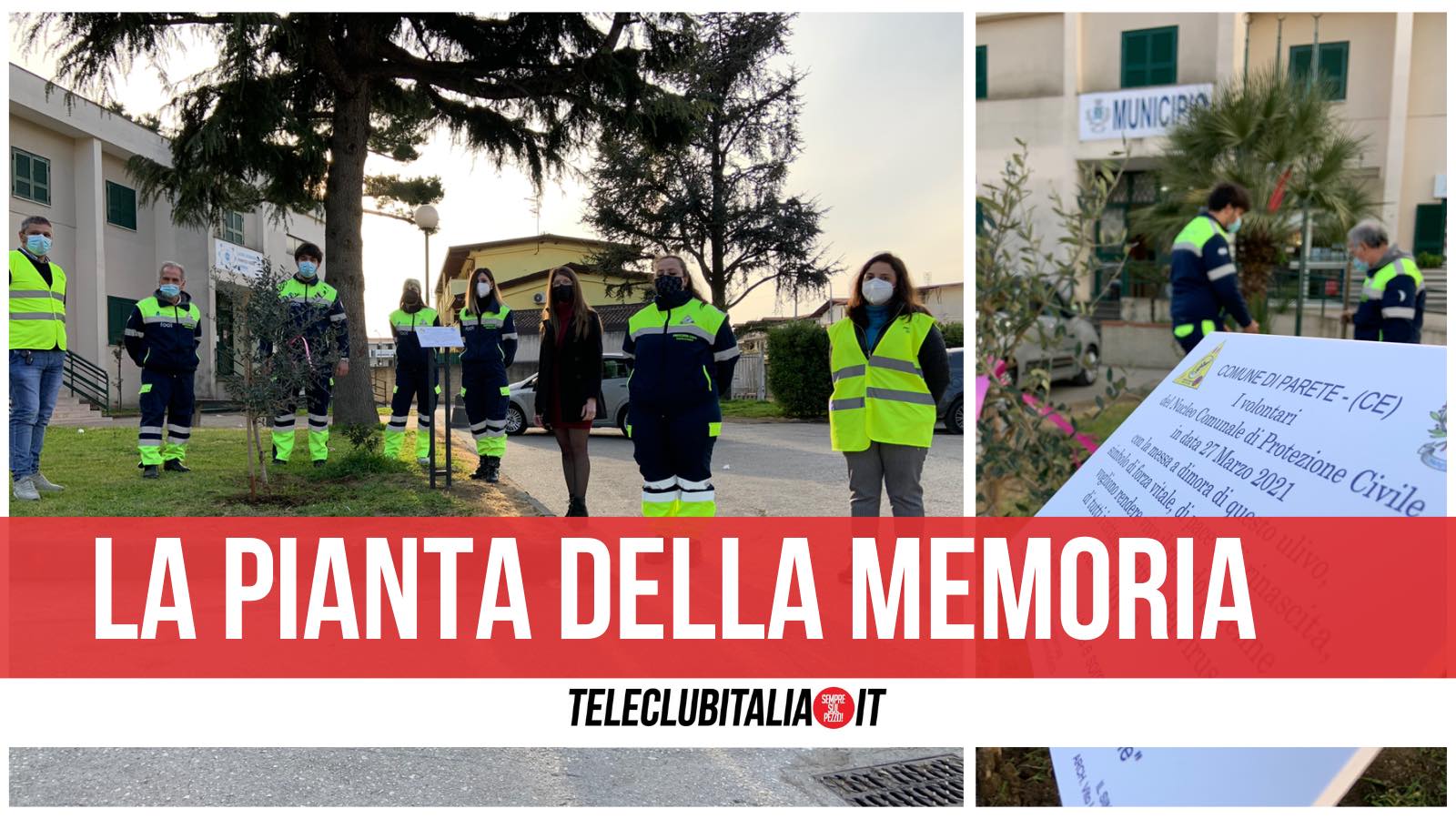 La cerimonia, svolta davanti alla Casa comunale di Parete, in via Amendola, nel pieno rispetto della normativa anti-covid, si è conclusa con lo scoprimento della targa commemorativa. “I volontari della Protezione Civile – recita la scritta impressa sull’insegna – in data 27 marzo 2021 con la messa a dimora di questo ulivo, simbolo di forza vitale, di pace e di rinascita, vogliono rendere vivo il ricordo perenne di tutti i cittadini vittime del virus Sars-Cov-2”.